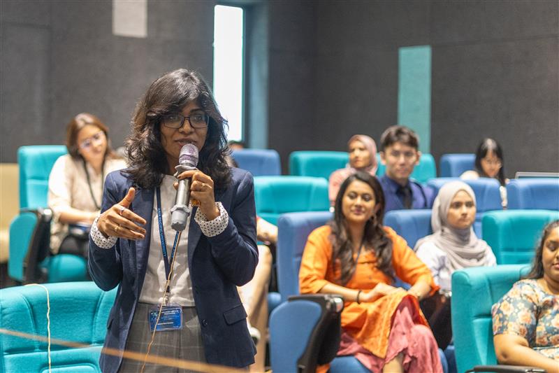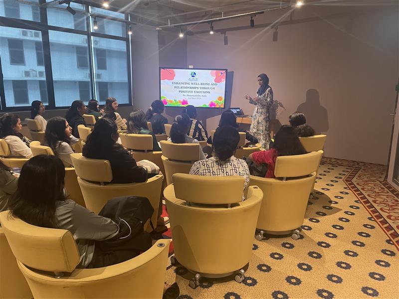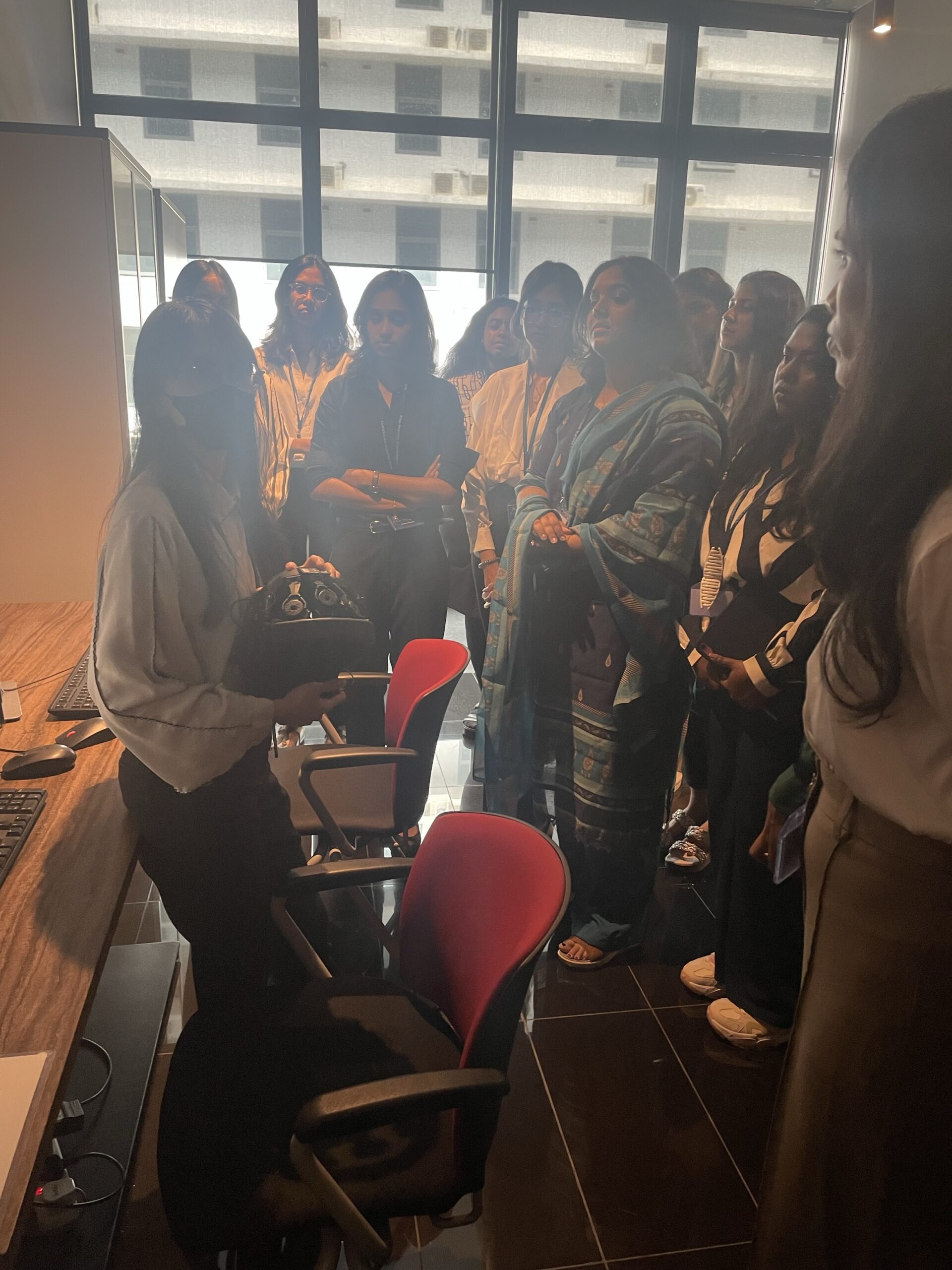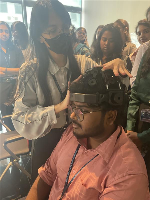 How fascinating it is to see one’s own brain waves dance from beta to delta to alpha! Students witnessed the real-time work of an Electroencephalogram by wearing it and observing their brain activity on a screen as they clenched their teeth , laughed, and held their breath. It was truly a moment of learning for students! Experiencing virtual reality to assess depth and height was another remarkable highlight of the day. While VR experiences are not new to many, its application to understanding the phobia of heights was insightful. Following this was an engaging and interactive session on positive psychology and wellbeing facilitated by Dr. Yati, Professor of Psychology. The interactions explored theories such as Broaden and Build and PERMA. Activities focused on gratitude and positive experience sharing were key moments and students participation was commendable. Overall, it was an eventful day filled with significant learning and reflections.