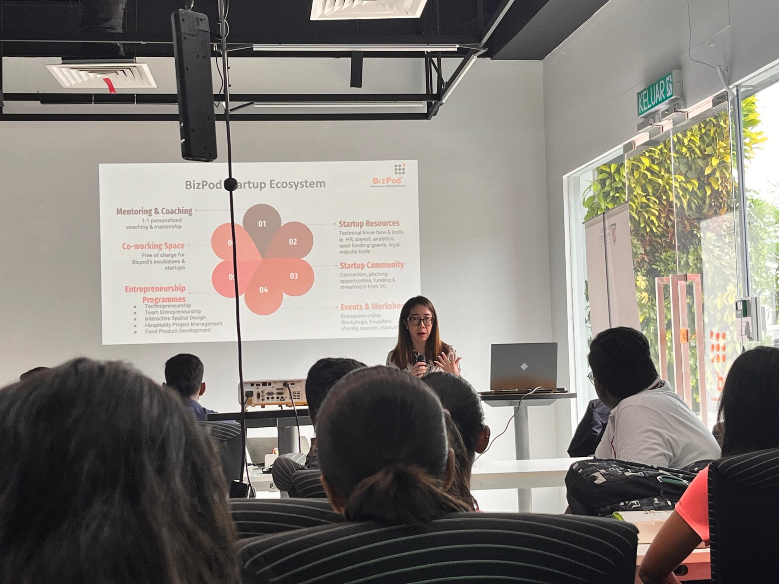 The first session, titled “Biz Pod – Where Your Entrepreneurial Journey Begins,” was led by a team of experts including Ms. Jessie Chang (Serial Entrepreneur), Ms. Jamie Wan (Manager of Programme Management), Ms. Cyntia Patrici (Venture Leader), and Ms. Yusmani Yunus (Senior Executive). This session introduced Biz Pod’s Start-up Incubation program, which aims to help Taylor’s students succeed in their entrepreneurial endeavors.