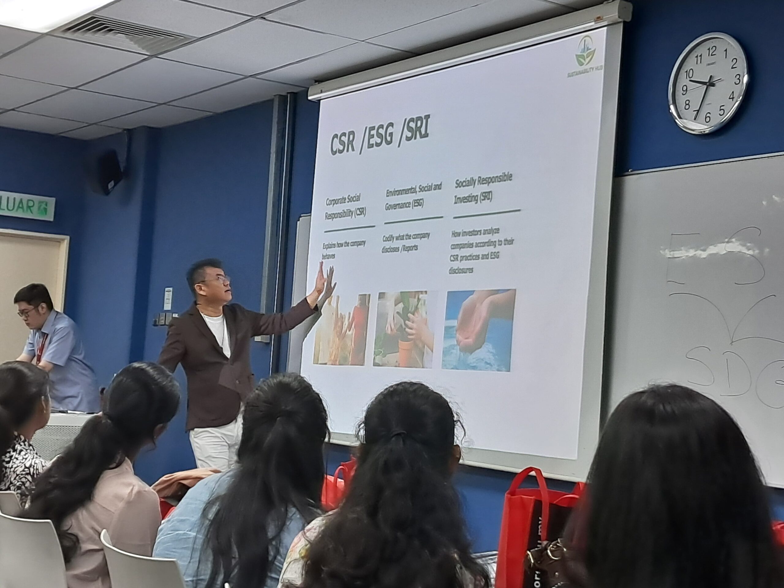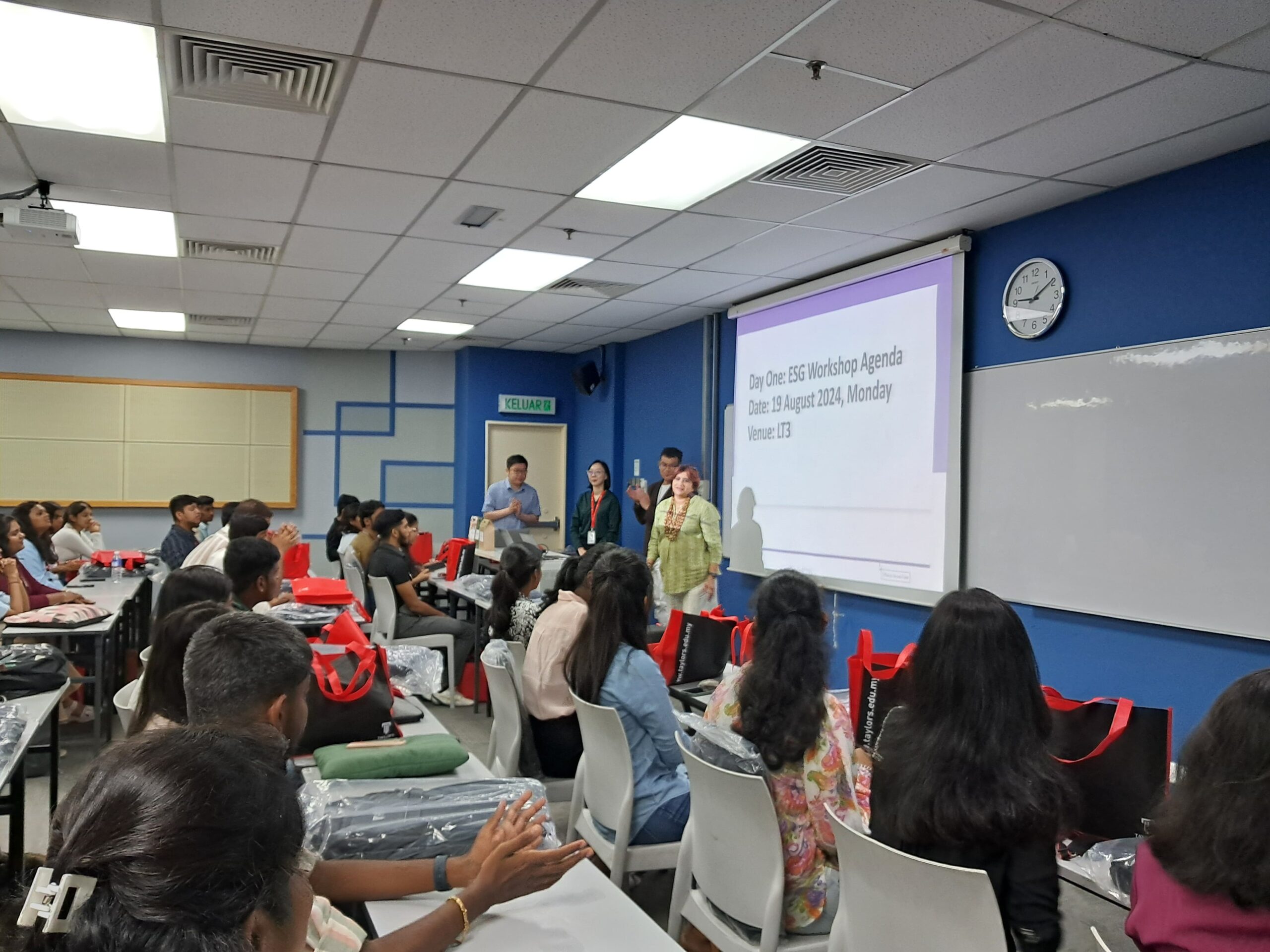 They attended a workshop on ESG, featuring lectures on ESG principles and their applications delivered by Dr. Gan Jen Lin, Dr. Nelwin Leow Xe Chung, and Dr. Kelvin Lee Yong Ming. The day concluded with a poster-making competition centered around ESG themes.