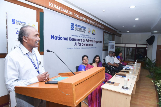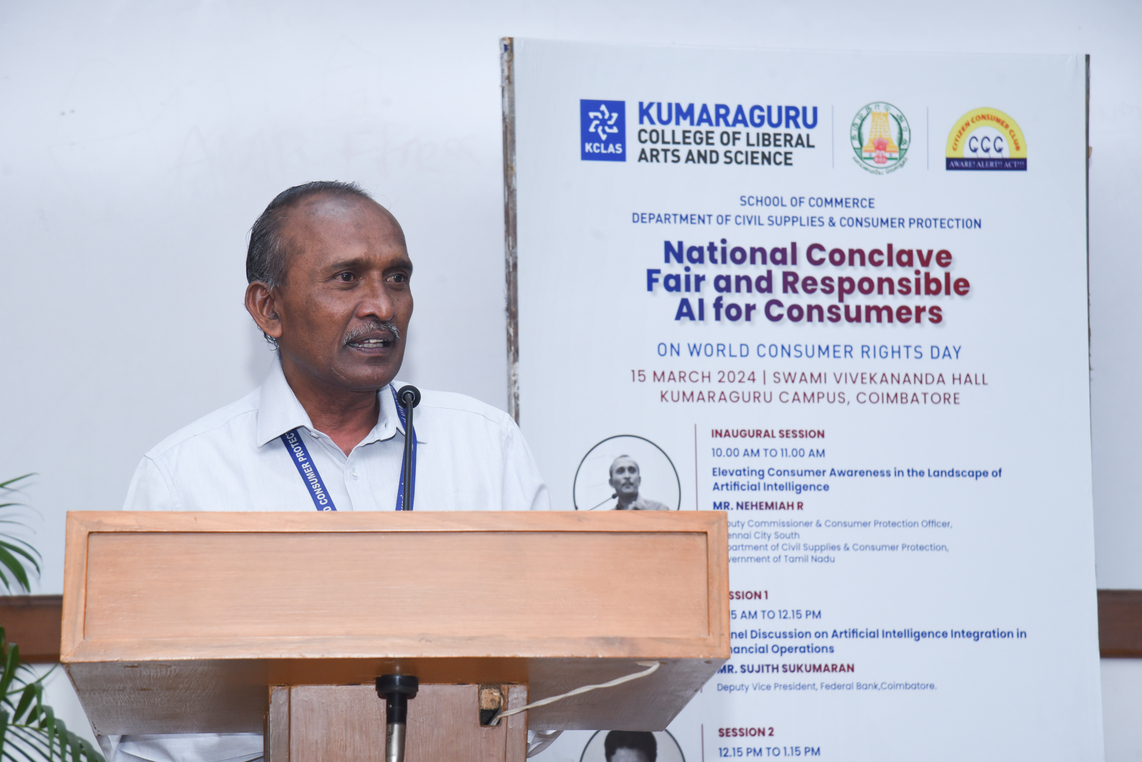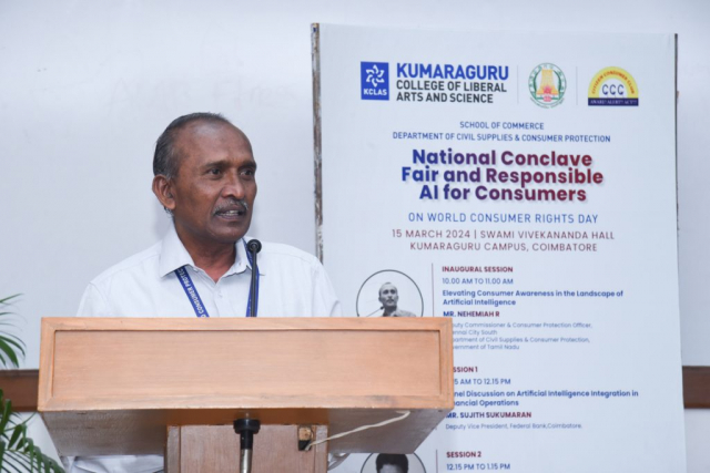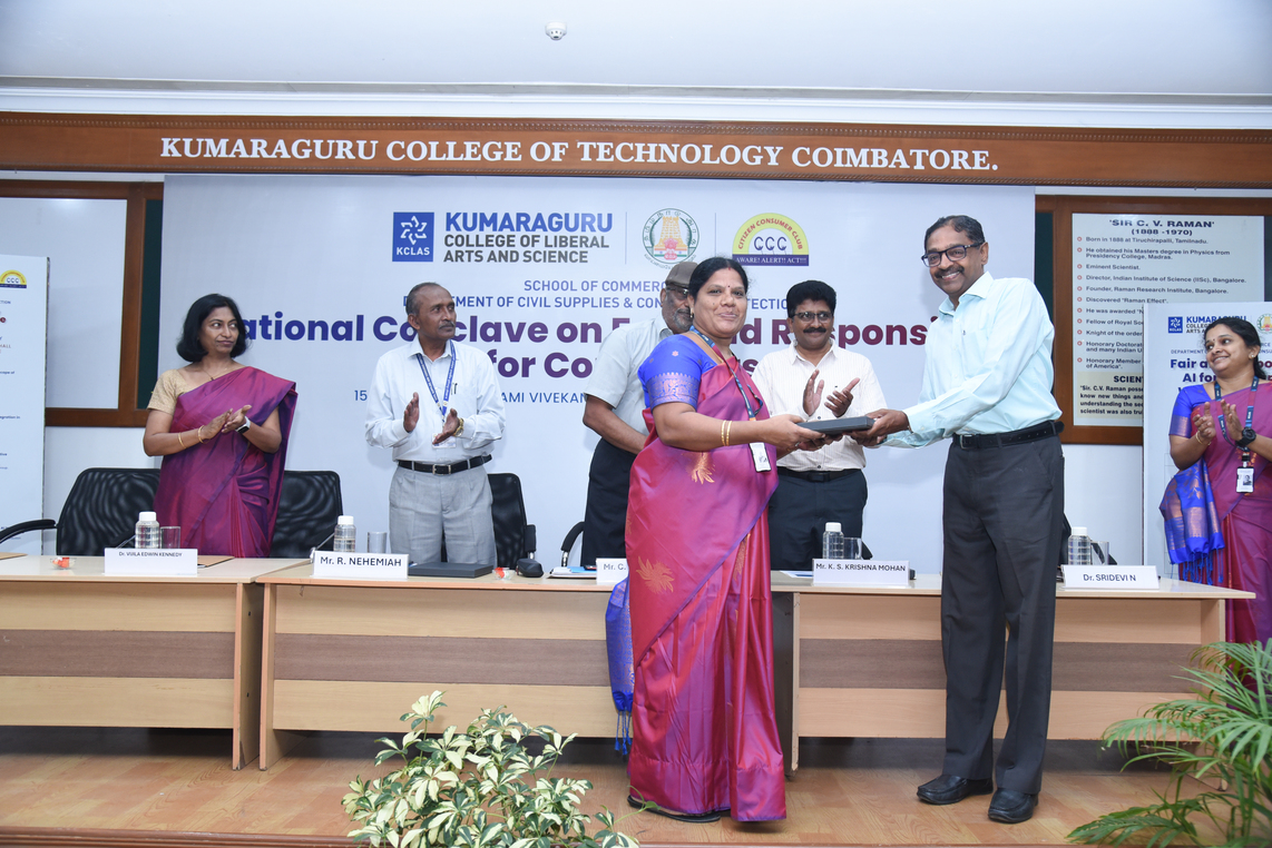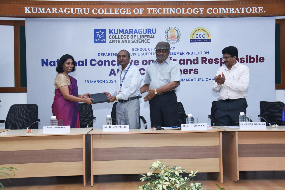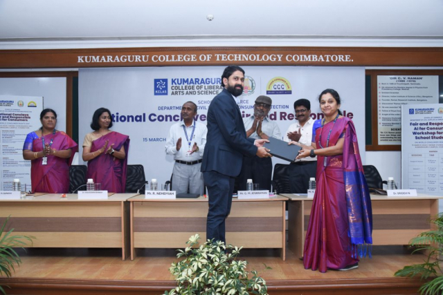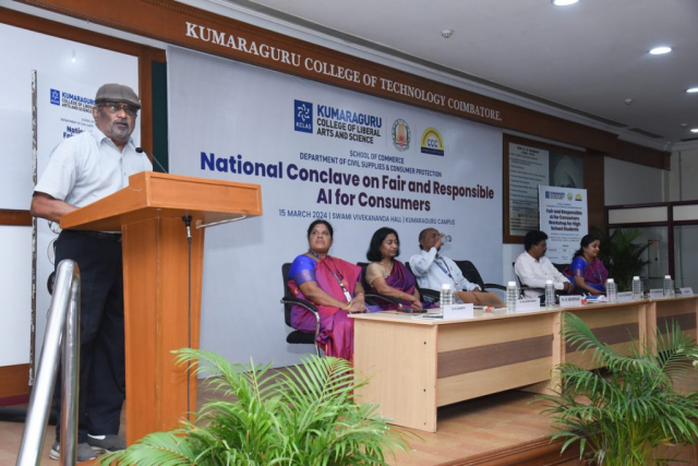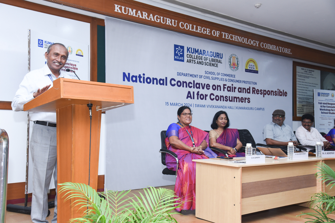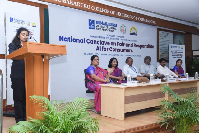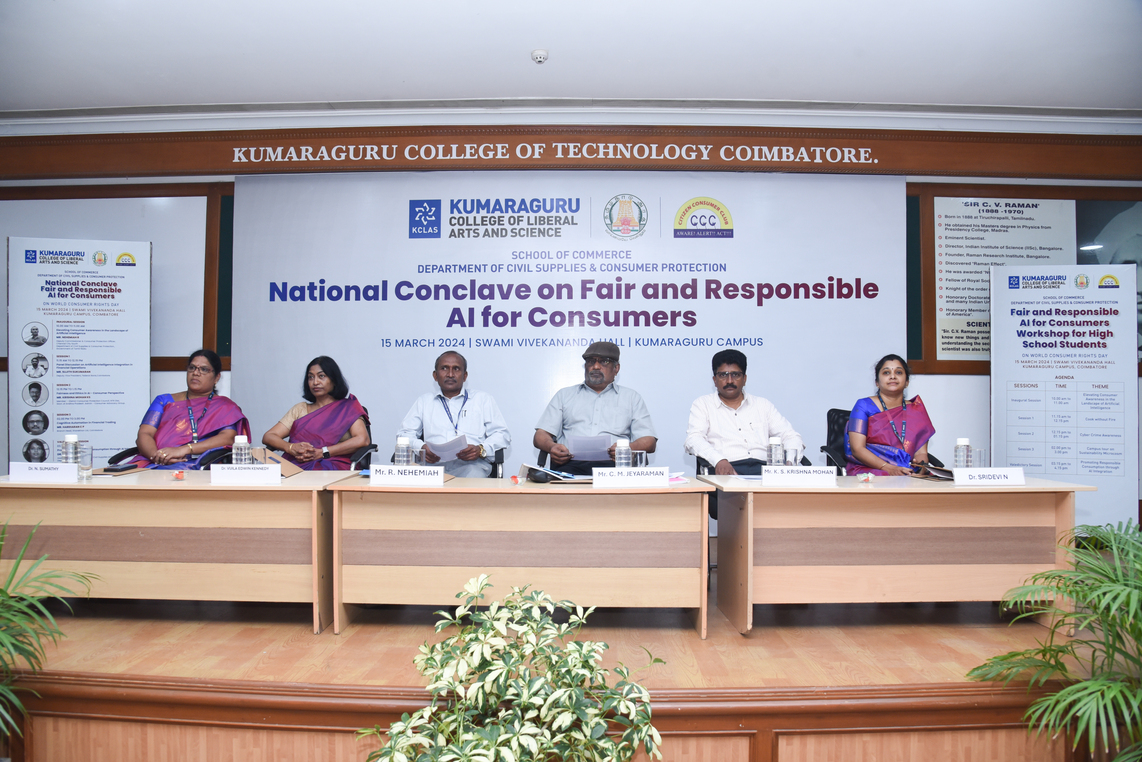 Kumaraguru College of Liberal Arts and Science (KCLAS), School of Commerce, along with the Citizen Consumer Club of KCLAS and the Department of Civil Supplies and Consumer Protection, hosted the National Conclave on “Fair and Responsible AI for Consumers” marking World Consumer Rights Day on March 15, 2024, .