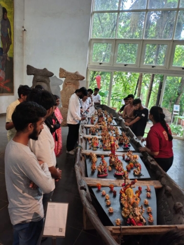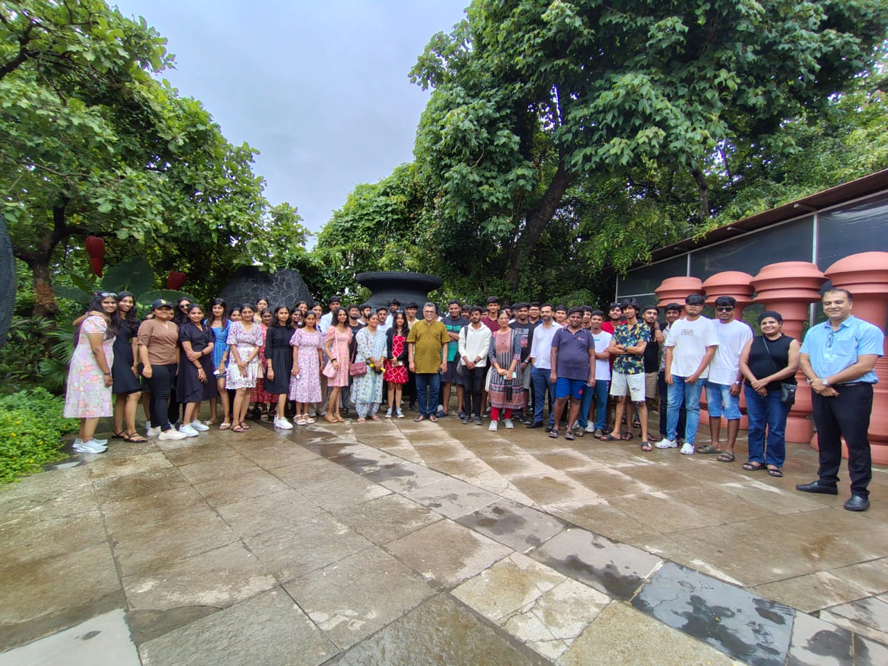 The students visited the Museum of Goa (MOG). This contemporary art institution showcases the rich cultural history of Goa through art, blending past, present, and future narratives. Artist and founder director of MOG, Mr. Subodh Kerkar, addressed the students, offering insights into the power of art in storytelling and its role in fostering appreciation for Goa’s heritage. The visit provided an enriching experience, blending culture and education, setting the tone for responsible management practices.