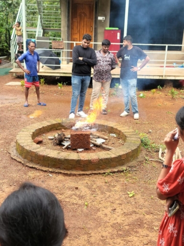The group then visited the Bhramhakarmali Temple, followed by a lunch featuring Goan local delicacies, prepared using home-grown spices at a local farm. Post-lunch, students engaged in a traditional Cashew Roasting activity, followed by storytelling and other engagement activities. The entire excursion was coordinated by SOUL Travellers, ensuring a deep connection between sustainability, culture, and local traditions.