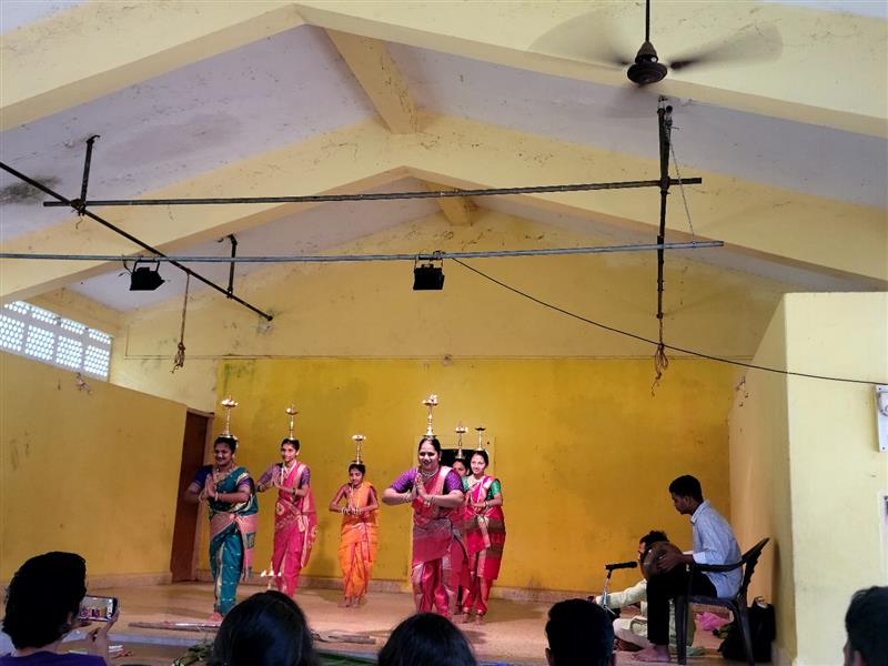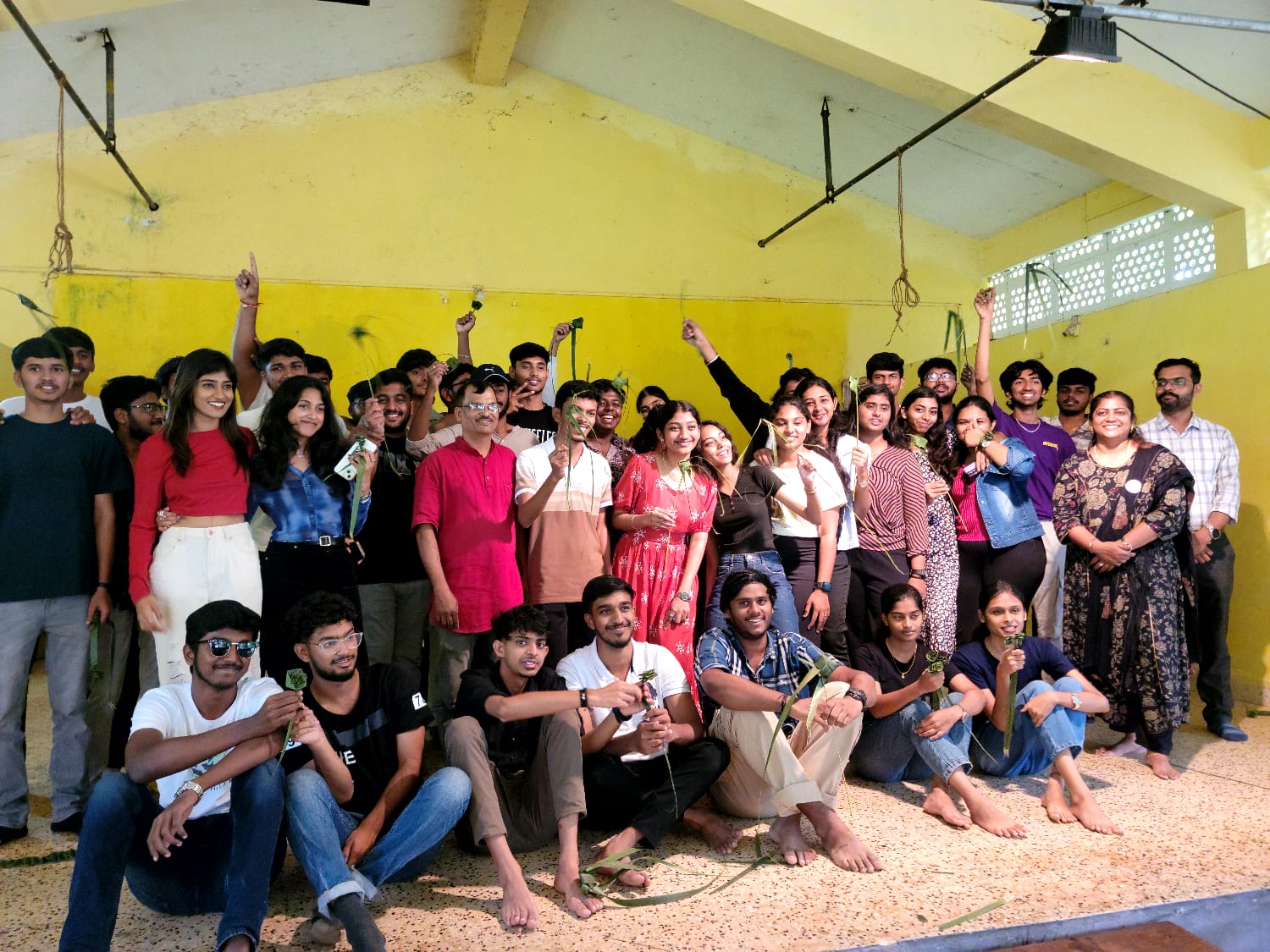 To offer an immersive sustainable experience, a day-long excursion exploring ecology, nature, and tradition was organized. The day began with a visit to the Harvalem Waterfall and the nearby Harvalem Temple, where students learned about the site’s historical and ecological significance. At Suryakant’s House, a local artist introduced students to leaf art, providing a hands-on creative experience. Students also witnessed the Divli Dance performed at a local temple, gaining insight into traditional Goan cultural practices.