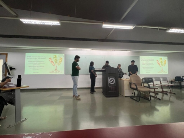 The final session, Leadership for Sustainable Development by Dr. Shelly Pandey, focused on leadership’s role in promoting sustainability. Students participated in an activity analyzing the application of SDGs in the automobile sector, evaluating how leaders can drive sustainable development in various industries, emphasizing the transformative potential of responsible leadership.