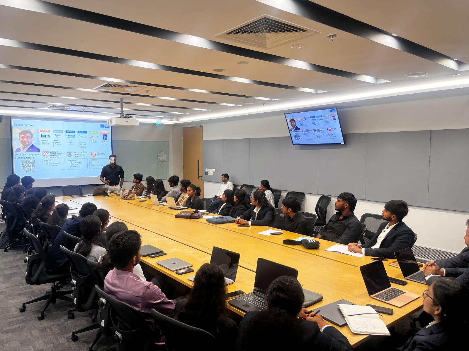 As part of the international learning initiative, students attended an engaging session at TUM Asia from 8:45 a.m. to 12:30 p.m., led by Dr. Nithin Narayanan on “Large Organization Transformation: Strategy, Structure, Culture, Systems, and People.”