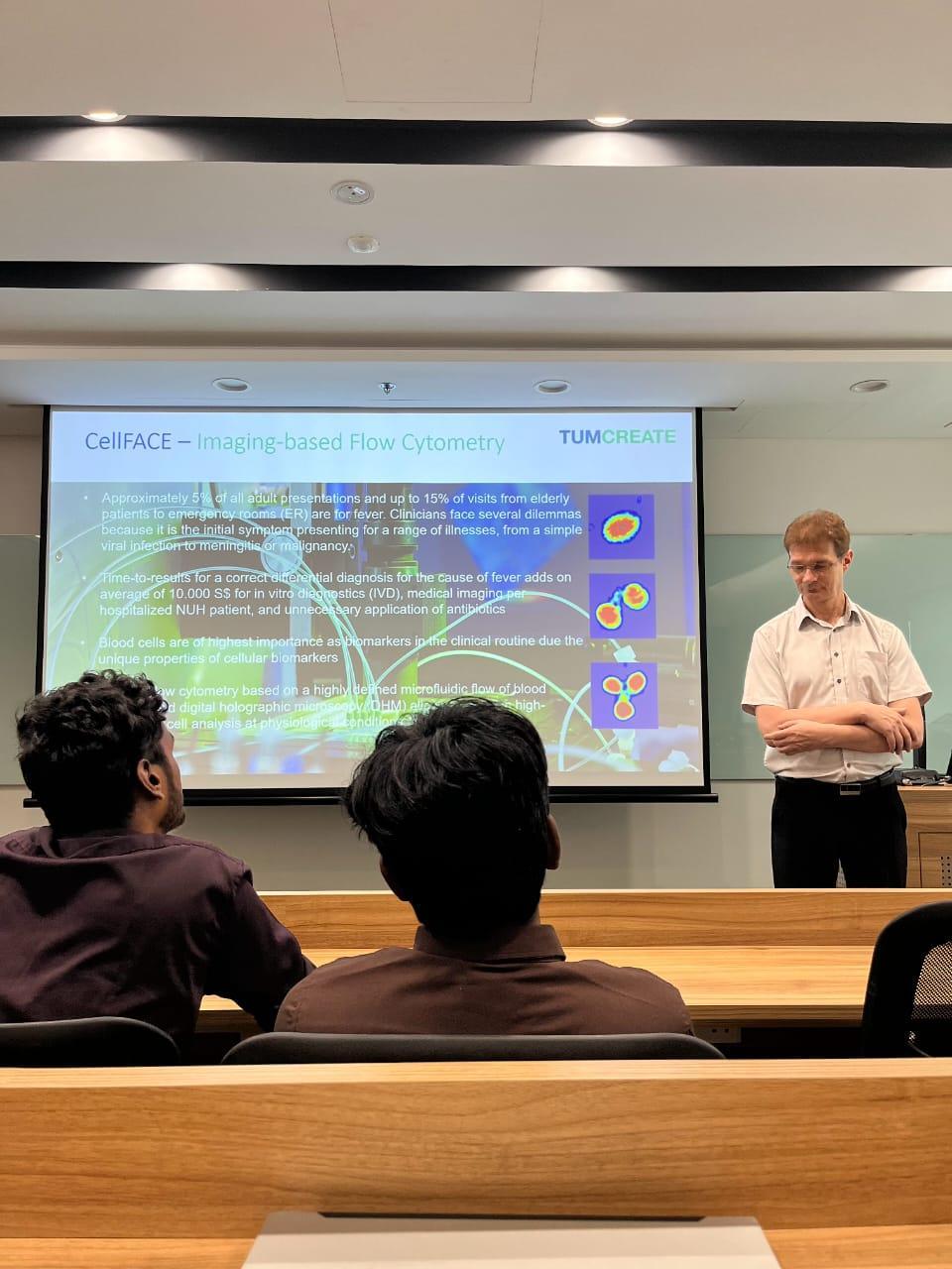 The day’s learning began with an engaging session at TUM Asia (8:45 a.m. to 12:30 p.m.) led by Dr. Andreas Rau, who explored how technology and sustainability are shaping the future of urban mobility. He introduced innovative concepts like Dynamic Autonomous Road Transit (DART) and Virtual Right of Way (VROW), showing how cities can reduce congestion and encourage the use of public transport. Dr. Rau emphasized the importance of smart mobility systems, circular economy practices, and the push-and-pull approach — discouraging car use while promoting eco-friendly travel options such as cycling and walking.