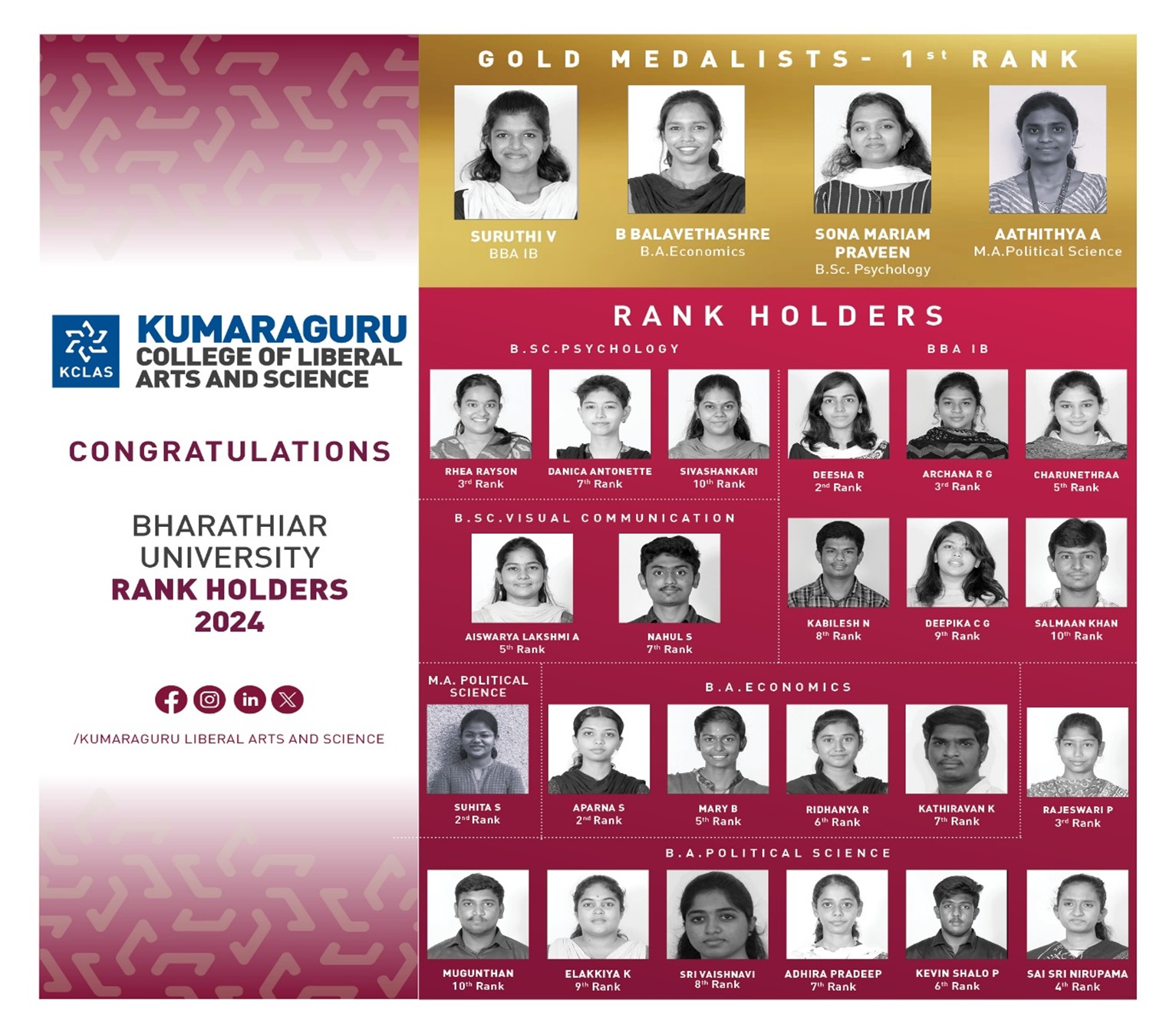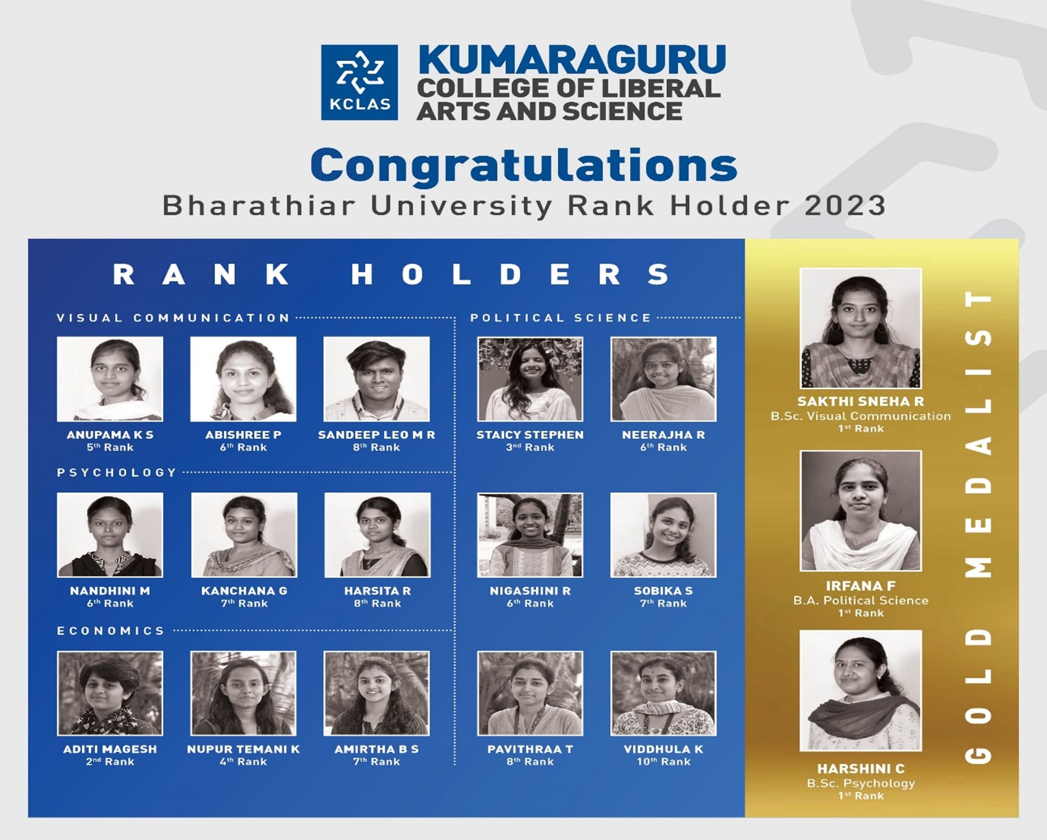 The teaching and learning process is taken to a higher level with the trademark KCLAS Edge and Edge+ activities. The students are exposed to Master Classes by eminent guests from academia, industry bodies and policy think tanks. Hands-on workshops, tailor made certificate course each semester, field works, online courses, industrial visits, Internships, Experiential learning give students an in-depth knowledge of the current trends in the field of specialization. The Department Association actively conducts diverse co-curricular initiatives that enrich students’ learning experiences and foster holistic intellectual growth. These activities place the students in the right stead when they graduate and choose to pursue higher education or immediate careers.